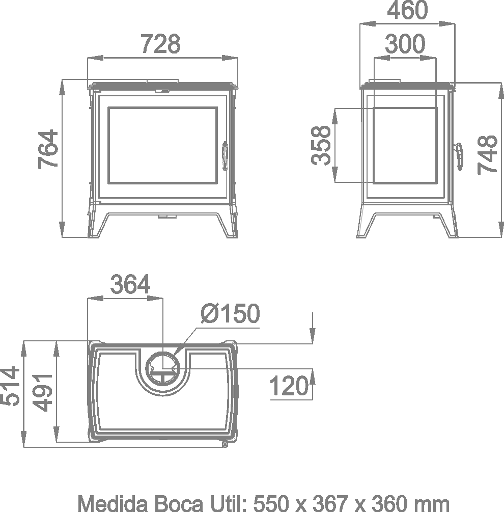- Diámetro salida humos: 150 mm.