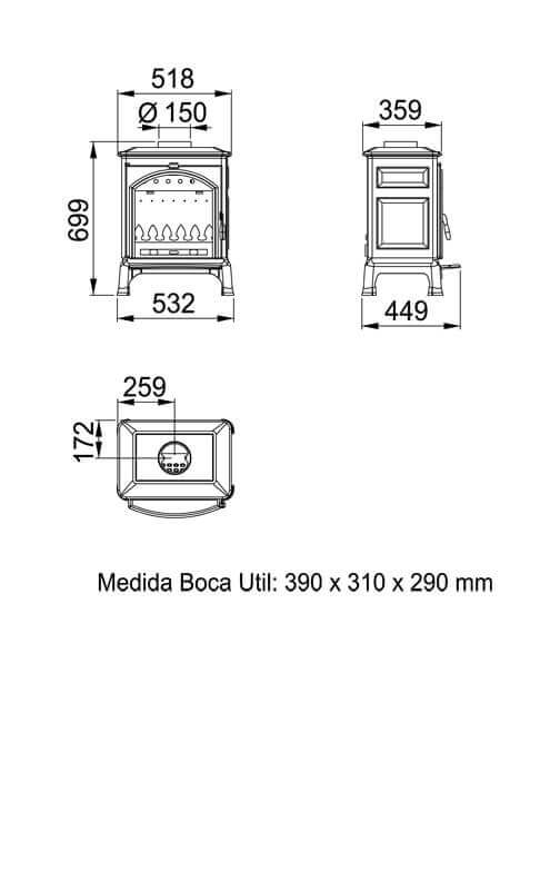 - Diámetro salida humos: 150 mm.